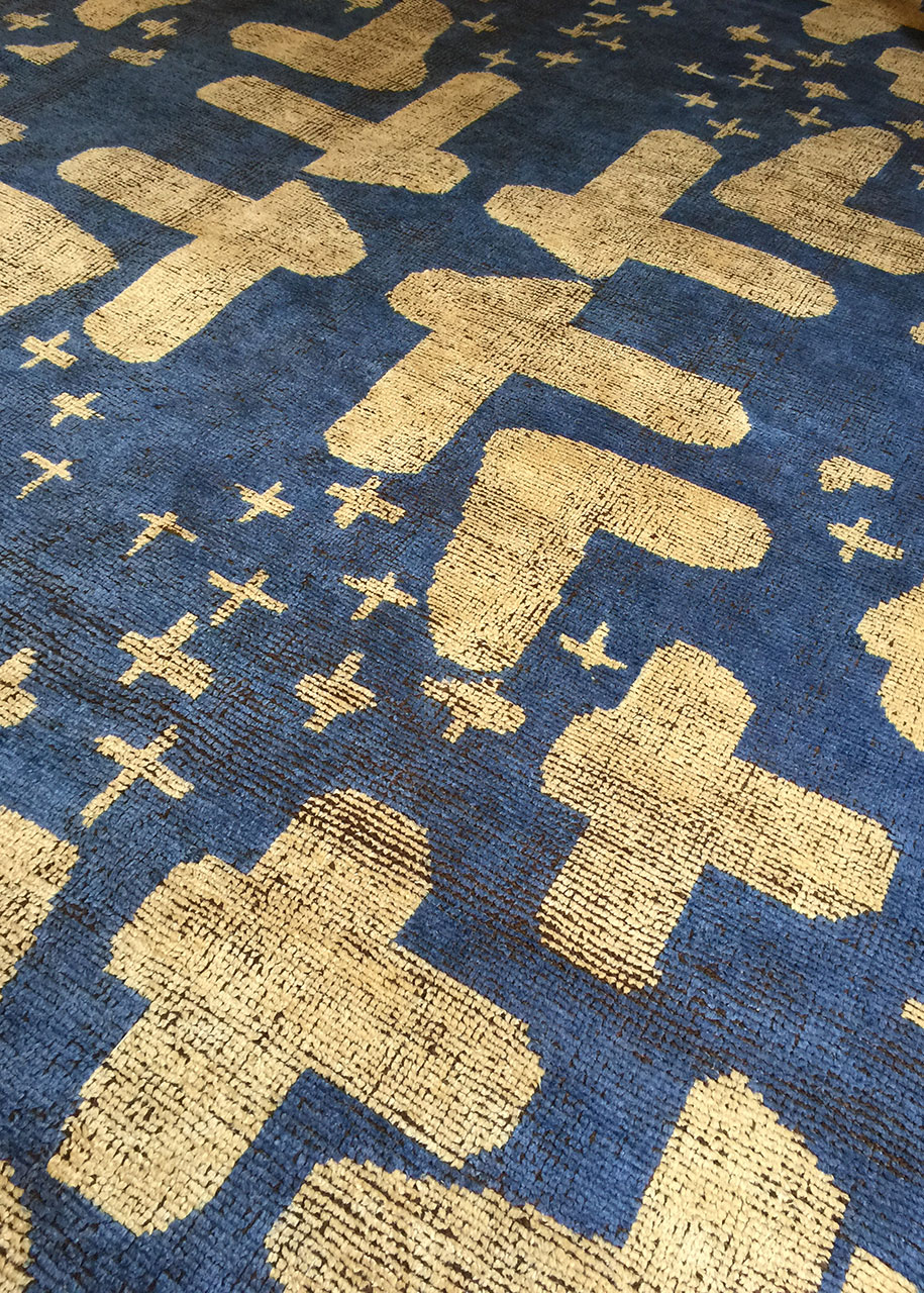 This exquisite  contemporary silk rug draws inspiration from the vibrant hues and fluid  artistry found in the Byzantine mosaics of the Mausoleum of Galla Placidia.  Created with a low knot count, this piece exudes a sense of luxurious  simplicity, with its lustrous silk surface enhancing the richness of the  colors.
